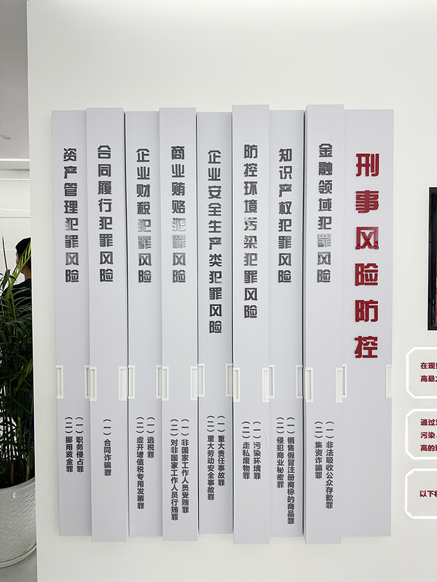 风险防控区则是整个教育中心的核心部分,围绕刑事、民商事及涉外领域三大板块,详细剖析了 28 类风险问题。从一个个真实发生的典型案例展示中,我们深刻感受到风险的多样性与复杂性,以及一旦风险发生,对企业可能造成的巨大冲击。